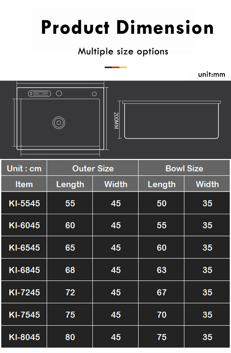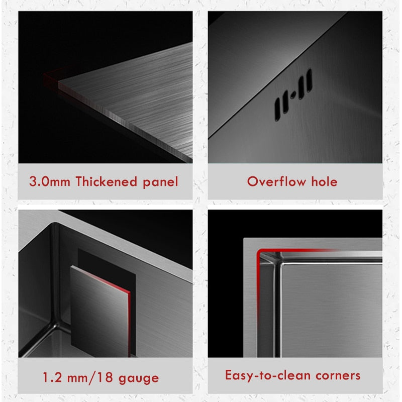 Commercial-Grade Finish Extra-tough SUS304 stainless steel sinks withflawless wear-resistant finish that's easy to keep clean.