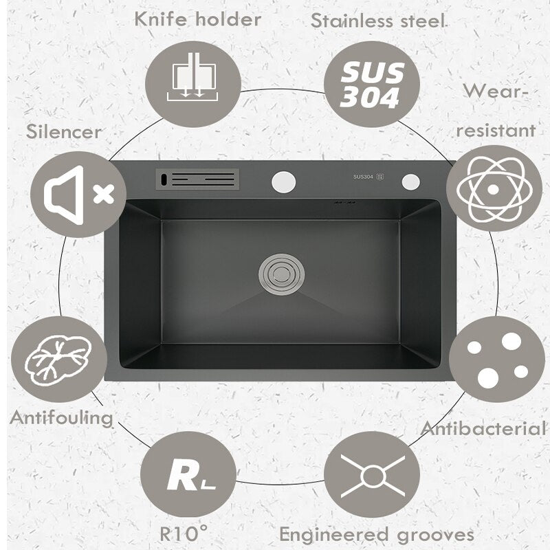 304 Stainless Steel Multifunction Kitchen Sink With Knife Holder